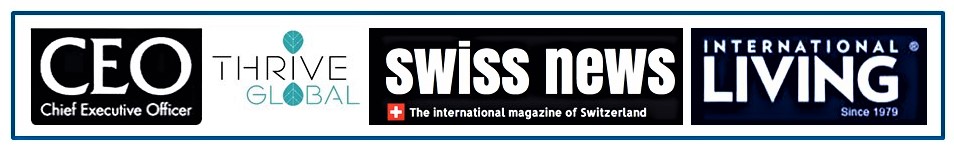 CEO Magazine, Thrive Global, Compensation & Benefits International, Swiss Insurance (Schweizer Versicherung), International Living, Swiss World Magazine, Swiss Life Business Magazine, Swiss News, Seminar Inside, etc.